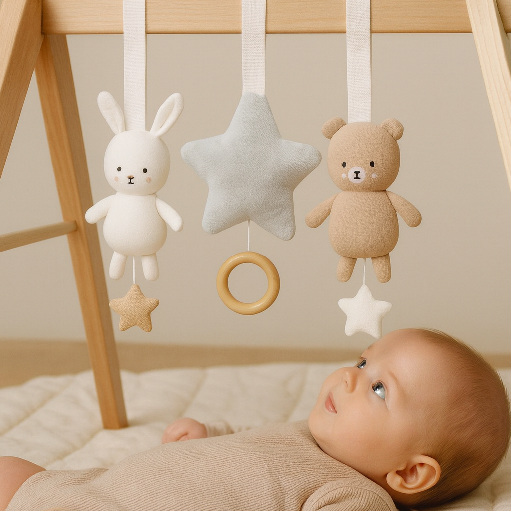 Χαριτωμένα και πολύ απαλά παιχνιδάκια για το ξύλινο γυμναστήριο (πωλείται χωριστά-θα το βρείτε εδώ)