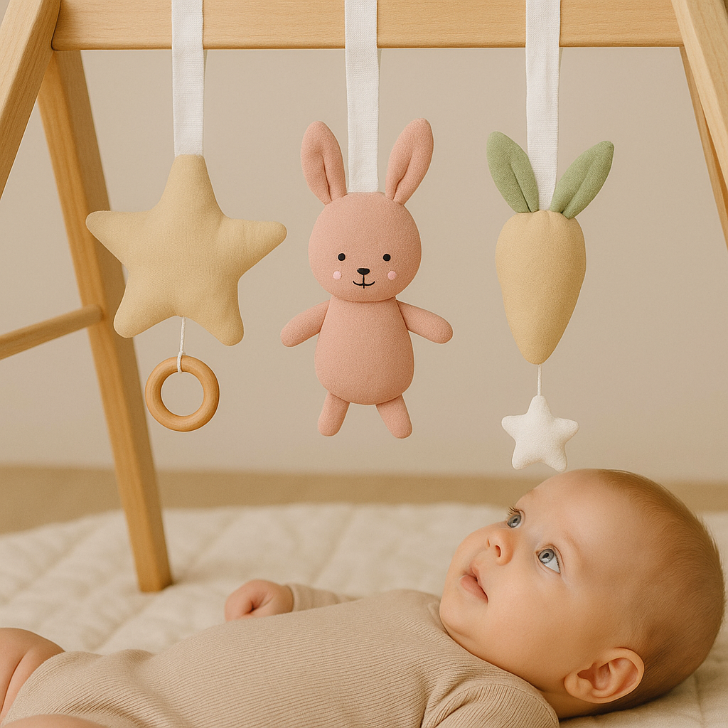 Χαριτωμένα και πολύ απαλά παιχνιδάκια για το ξύλινο γυμναστήριο (πωλείται χωριστά-θα το βρείτε εδώ)
