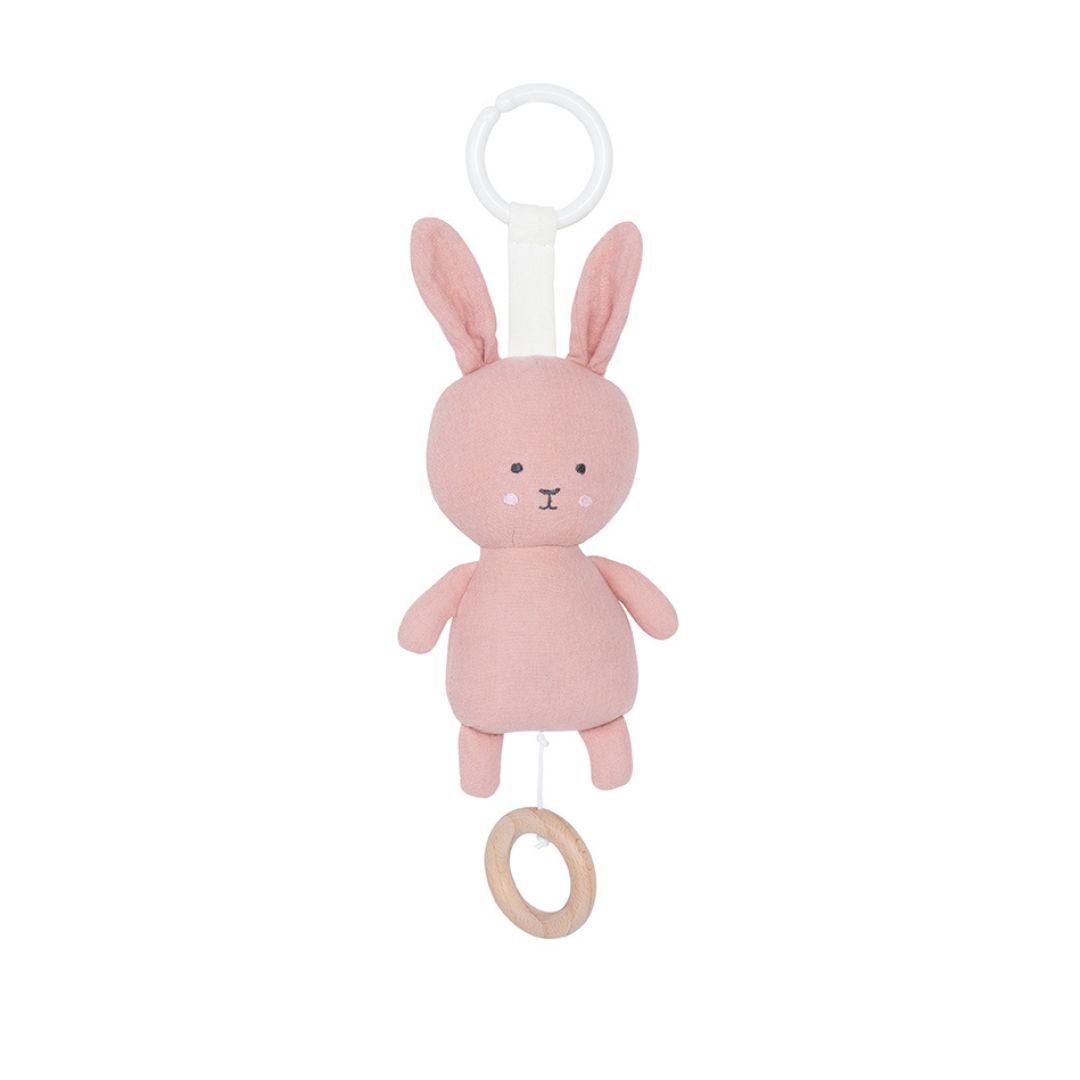 Ένα πανέμορφο μουσικό κουνελάκι από απαλό βελούδο και βαμβάκι, που θα συντροφεύει το μωρό σας στις πιο γλυκές στιγμές χαλάρωσης. Κρεμιέται εύκολα στο καρότσι, στο ρηλάξ ή στην κούνια.