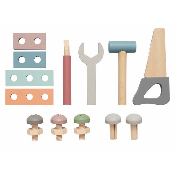Για τους μικρούς… μάστορες του σπιτιού! Το ξύλινο βαλιτσάκι εργαλείων περιλαμβάνει ό,τι χρειάζεται ένας μικρός ξυλουργός για ατέλειωτες ώρες δημιουργικού παιχνιδιού. Τα εργαλεία είναι κατασκευασμένα από υψηλής ποιότητας ξύλο, με όμορφα χρώματα και διαφορετικές υφές που διεγείρουν τις αισθήσεις.