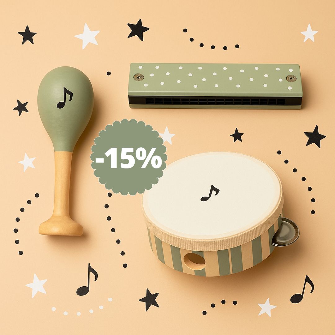 Ανακαλύψτε τον κόσμο των ήχων μέσα από ένα υπέροχο σετ τριών μουσικών οργάνων ειδικά σχεδιασμένων για παιδιά! Οι μικροί μουσικοί σας θα αγαπήσουν να πειραματίζονται με ρυθμούς, μελωδίες και ήχους — αναπτύσσοντας τη φαντασία, τη δημιουργικότητα και τη μουσική τους αντίληψη.