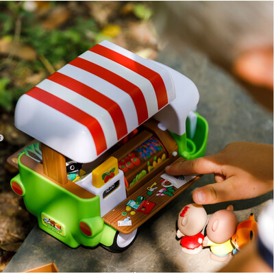 A: Η πιτσαρία περιλαμβάνει διάφορες εκπλήξεις και δράσεις για να ζωντανέψει την εμπειρία, όπως κυλινδρικό μενού, αναδιπλούμενο τραπέζι και έναν φούρνο που με το πάτημα κουμπιού βγάζει την πίτσα. Περιλαμβάνει επίσης έναν χαρακτήρα, τον Tony τον σεφ.