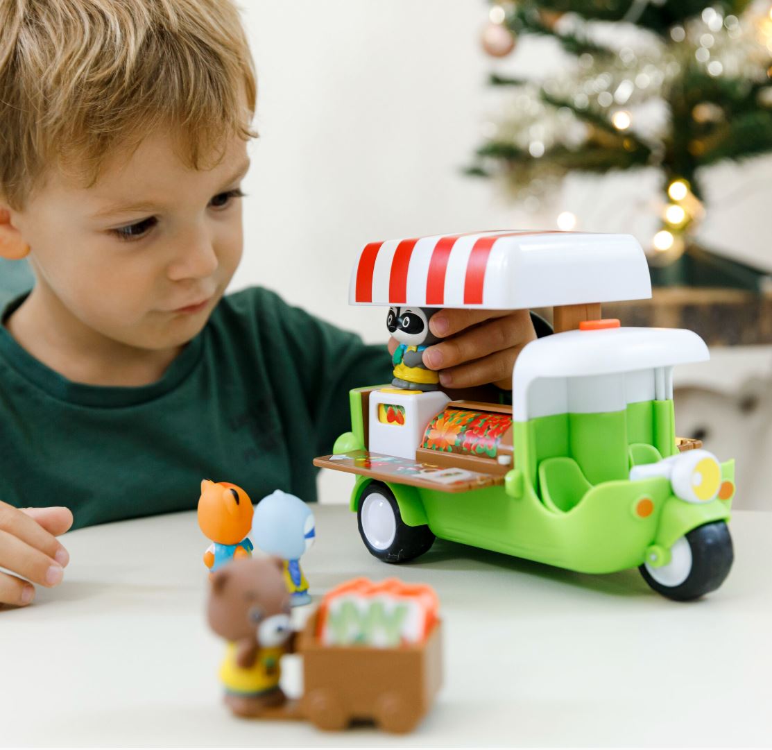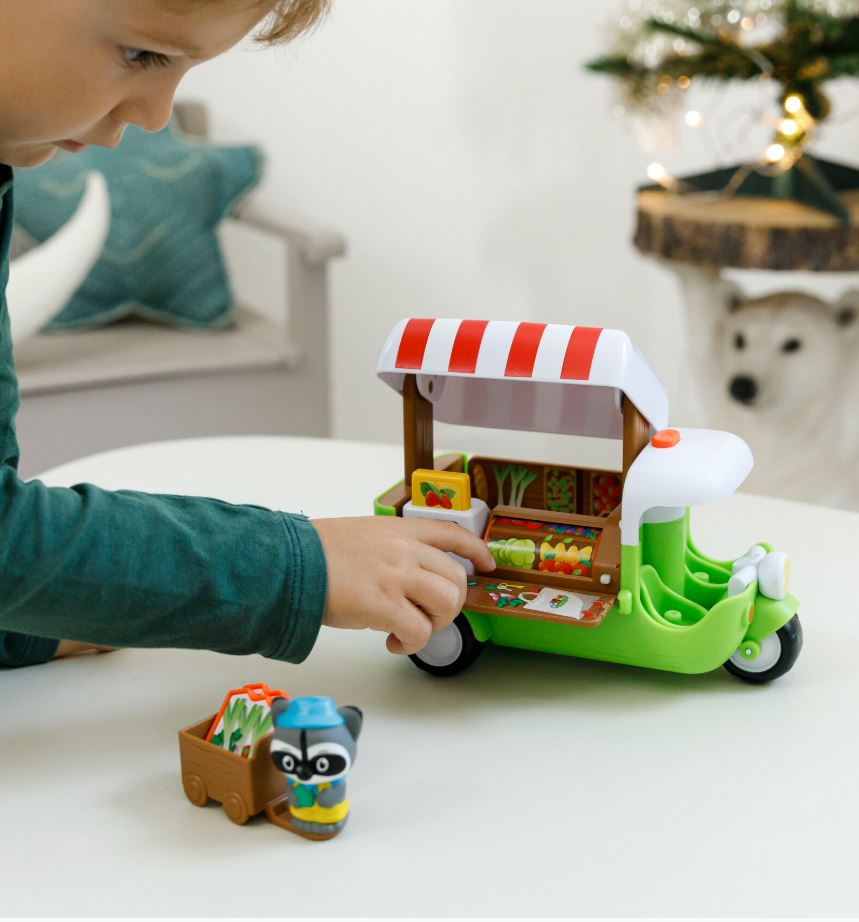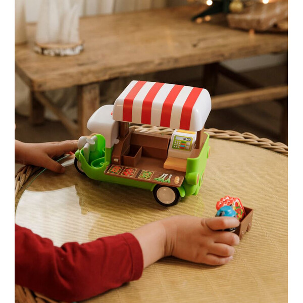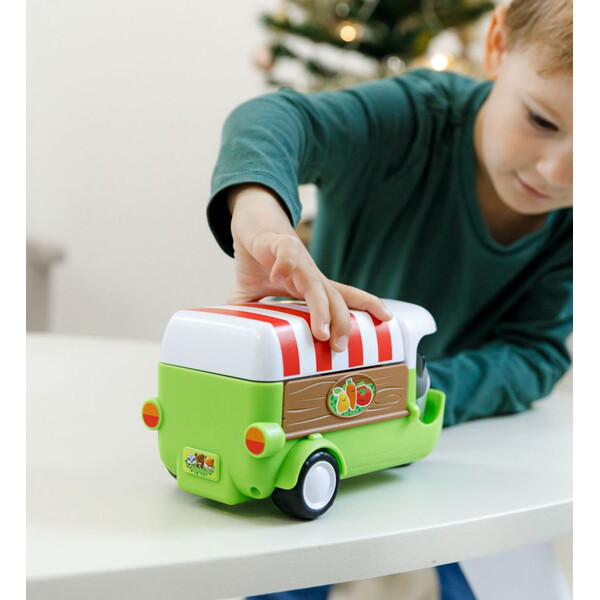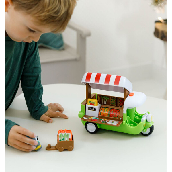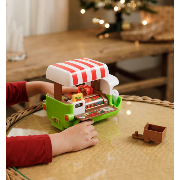 ένα μικρό θαύμα με ρόδες που, με το πάτημα ενός κουμπιού, μεταμορφώνεται σε ένα ολόκληρο μανάβικο γεμάτο φρούτα, λαχανικά και ατελείωτη διασκέδαση!