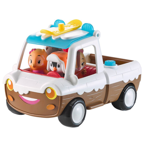 Με μια μαγική κίνηση, το φορτηγάκι ανοίγει και αποκαλύπτει ένα πολύχρωμο κατάστημα όπου όλα συμβαίνουν: