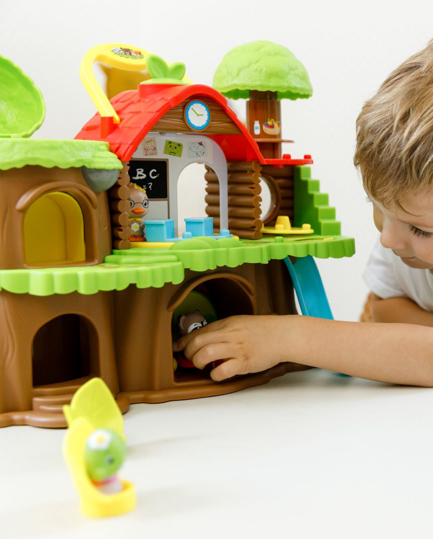 Ντριν Ντριν! Τα ζωάκια τρέχουν χαρούμενα να ανέβουν στην τάξη τους μέσα από τον κορμό του δέντρου που μεταμορφώνεται σε… ασανσέρ!