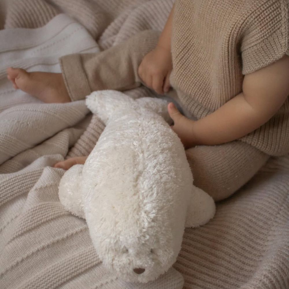 MOONIE 2.0: Επαναφορτιζόμενο βοήθημα ύπνου Φώκια με ηχογράφηση & αισθητήρα κλάματος – Οργανικό βαμβάκι Polar