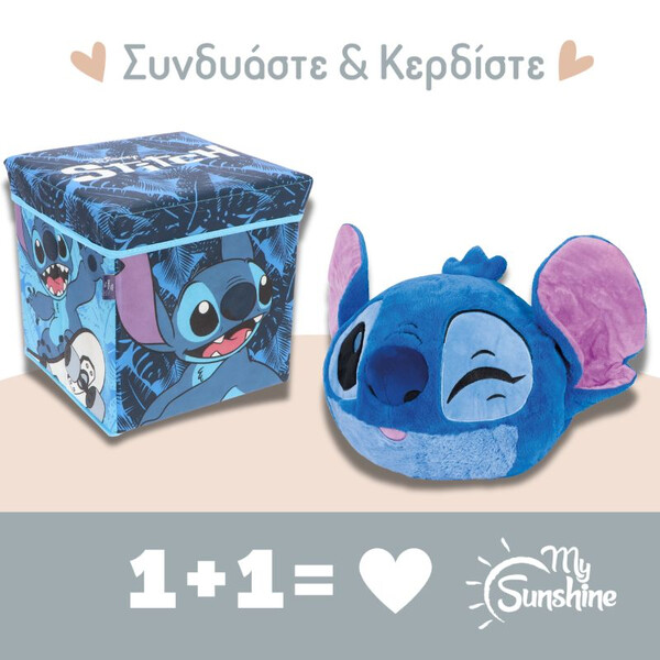 ΠΡΟΣΦΟΡΑ Noxxiez: Αναδιπλούμενο Κουτί Αποθήκευσης & Λούτρινο Μαξιλάρι με τσέπες - Stitch