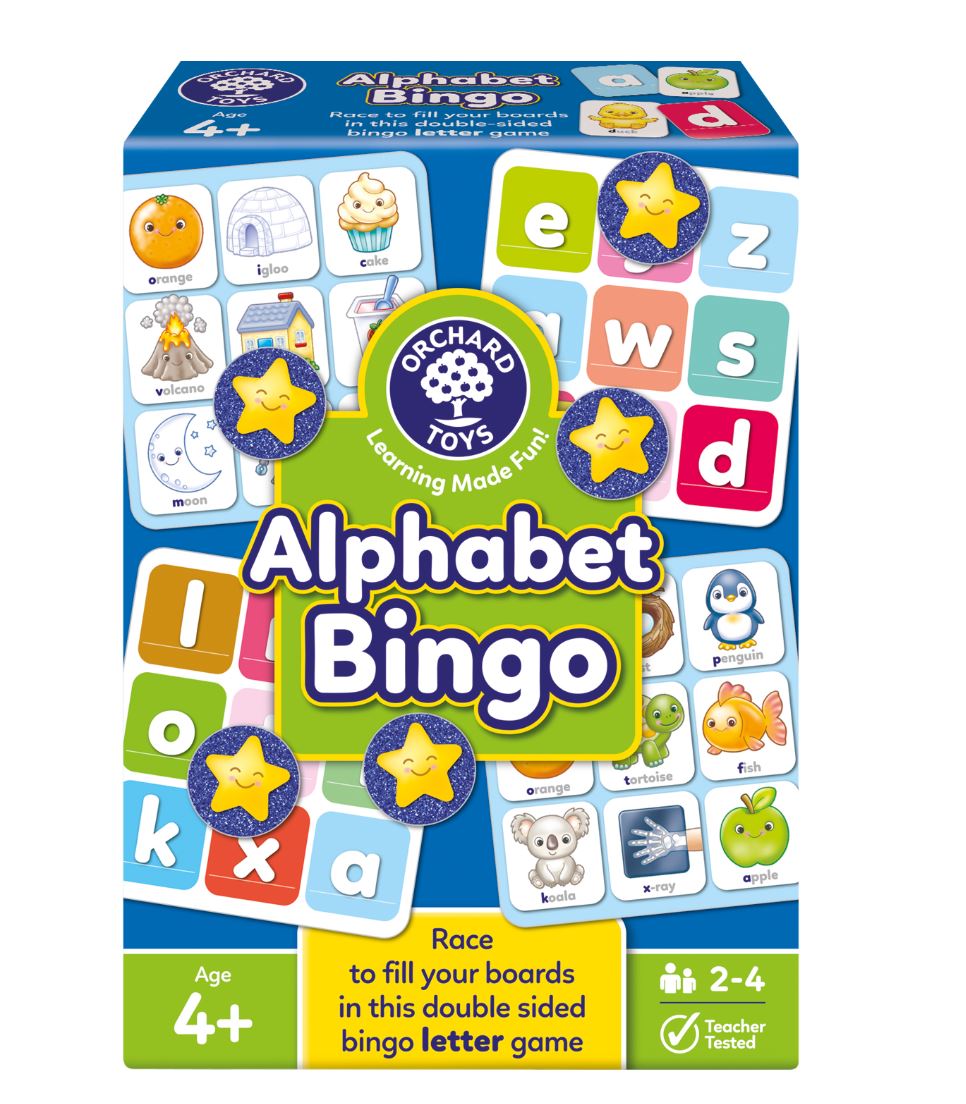 Το Alphabet Bingo μετατρέπει την πρώιμη ανάγνωση και την αναγνώριση γραμμάτων σε διασκεδαστικό παιχνίδι! Ιδανικό για παιδιά από 4 ετών και άνω, συνδυάζει έγχρωμες, ανθεκτικές κάρτες και διπλής όψης ταμπλό για πολλούς τρόπους παιχνιδιού.