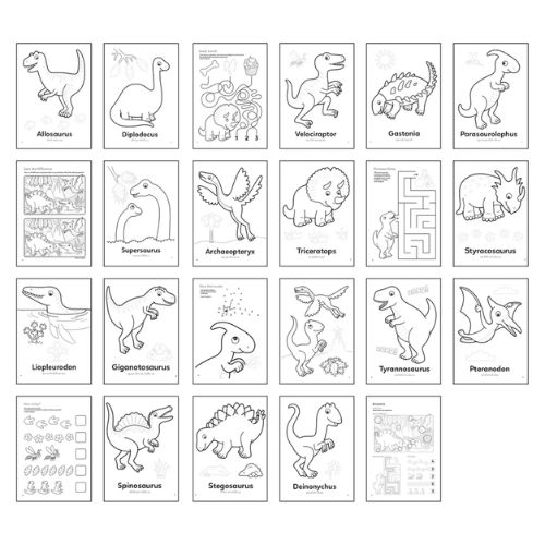 Φιλικοί χαρακτήρες δεινοσαύρων για ζωγραφική: Βάλτε χρώμα σε μεγάλα, καθαρά σχέδια φιλικά προς τα παιδιά.