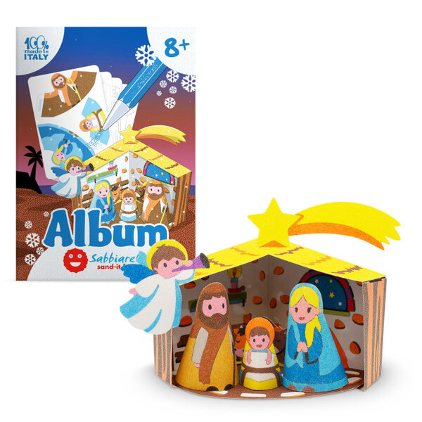 Δημιουργήστε την πιο όμορφη μίνι φάτνη για το Χριστουγεννιάτικο δέντρο ή το σπίτι! Το σετ περιλαμβάνει 5 προ-κομμένα φύλλα (15x20 cm) με την Παναγία, τον Ιωσήφ, το Μωρό Ιησού, τον Άγγελο και τα ζωάκια. Χρωματίζονται εύκολα με μαρμαρόσκονη ή άμμο Sabbiarelli® και συναρμολογούνται πανεύκολα με τις οδηγίες που περιλαμβάνονται.
