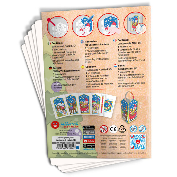 Περιλαμβάνεται ένα 3D χριστουγεννιάτικο Φανάρι για να χρωματίσετε με την ειδική άμμο και να συναρμολογήσετε.