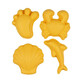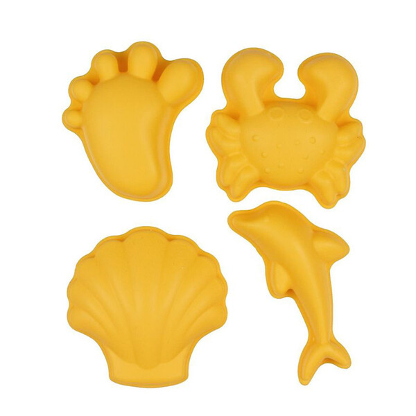 Το σετ περιλαμβάνει 4 καλούπια: πατουσάκι, δελφινάκι, καβουράκι, κοχύλι και έρχεται μέσα σε μία εύχρηστη τσαντούλα από δίχτυ, ιδανική για την άμμο και τη θάλασσα!