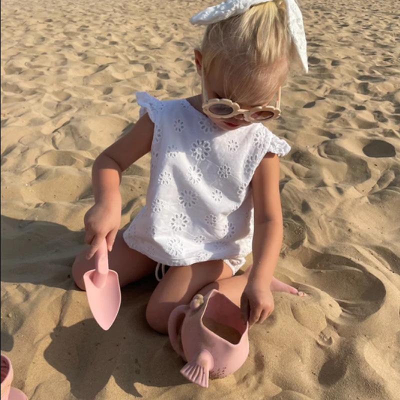 Προσφορά Scrunch: Κουβαδάκι ψαράκι + Φτυαράκι - Τσουγκράνα + Καλούπια (4 τεμάχια), όλα από ανακυκλώσιμη σιλικόνη