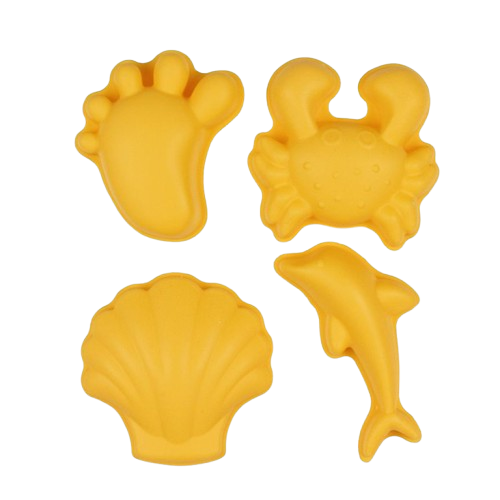 Το σετ περιλαμβάνει 4 καλούπια: πατουσάκι, δελφινάκι, καβουράκι, κοχύλι και έρχεται μέσα σε μία εύχρηστη τσαντούλα από δίχτυ, ιδανική για την άμμο και τη θάλασσα!