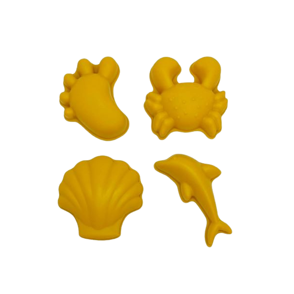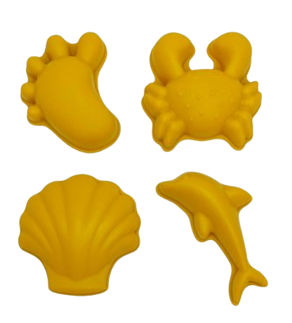 Το σετ περιλαμβάνει 4 καλούπια: πατουσάκι, δελφινάκι, καβουράκι, κοχύλι και έρχεται μέσα σε μία εύχρηστη τσαντούλα από δίχτυ, ιδανική για την άμμο και τη θάλασσα!