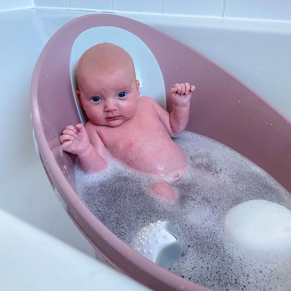 Αγοράσαμε ένα μπανάκι Shnuggle ελπίζοντας ότι θα μπορούσε να βοηθήσειν. Ω Θεέ μου. Ήταν σαν ένα διαφορετικό μωρό! Κάθισε, ακουμπώντας προς τα πίσω στην αφρώδη πλάτη και πλατσούριζε και και ενώ έπαιζε με το βιβλίο του μπάνιου του. Η ώρα του μπάνιου ήταν και πάλι διασκεδαστική! Δεν γλιστράει και πέφτει προς τα μέσα (αλλά πρέπει να φροντίσετε να τον καθίσετε σωστά ή θα γέρνει στο πλάι) και είναι απόλυτα ικανοποιημένος στο νερό μέχρι την κοιλιά του. Ακόμα πιο τέλειο, δεν χρειάζεται να κρατάτε το μωρό ταυτόχρονα! Για ένα νεογέννητο μπορεί να θέλετε να τα κρατάτε μόνο για να είστε σίγουροι, αλλά το παιδί μας 15 εβδομάδων (μεγάλο για την ηλικία του) δεν χρειάζεται άμεση υποστήριξη και μπορείτε απλώς να εστιάσετε στο παιχνίδι και το πλύσιμο. Μακάρι να το είχα αγοράσει νωρίτερα, καθώς πονούσε η πλάτη μου με το συνηθισμένο μπάνιο και το συνεχώς σκύβοντας και κρατώντας τον στη θέση του.