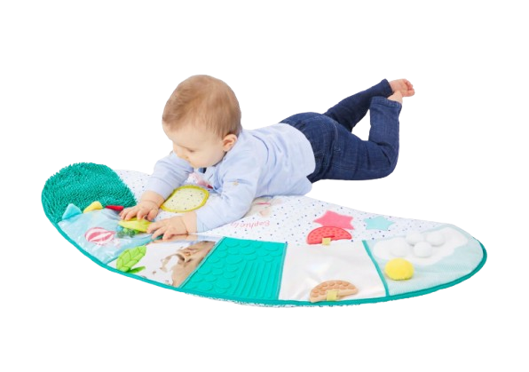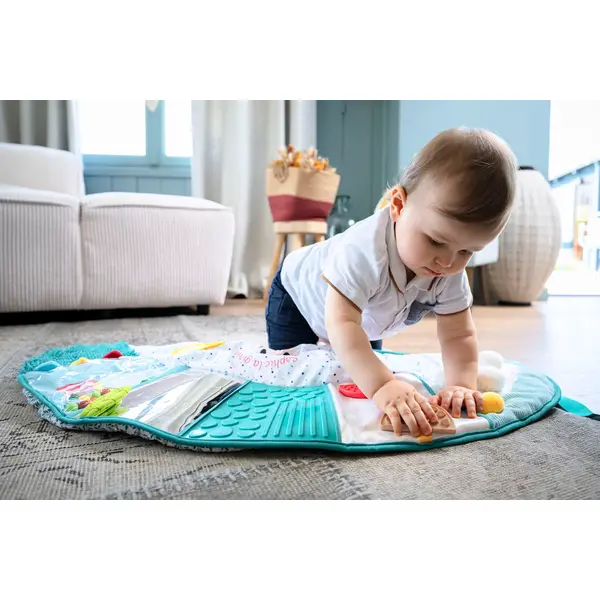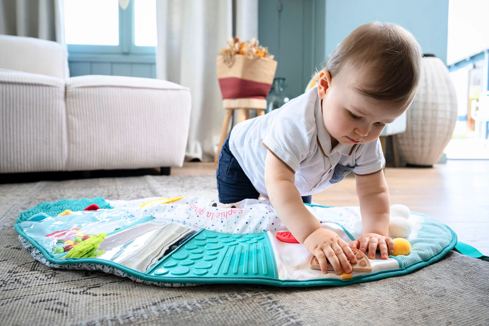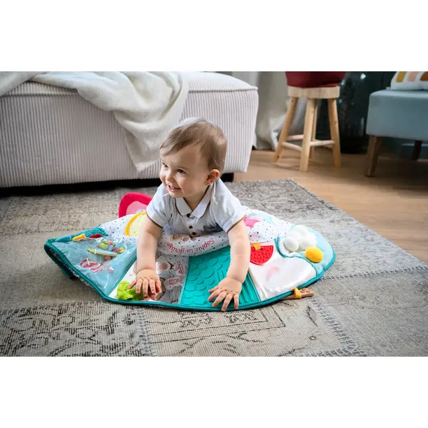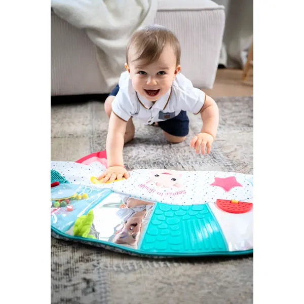 Το χαλάκι προσφέρει διαρκή ερεθίσματα που ενισχύουν την αφή, την ισορροπία και την εξερεύνηση, ενώ συνοδεύει το παιδί σε κάθε του κίνηση.