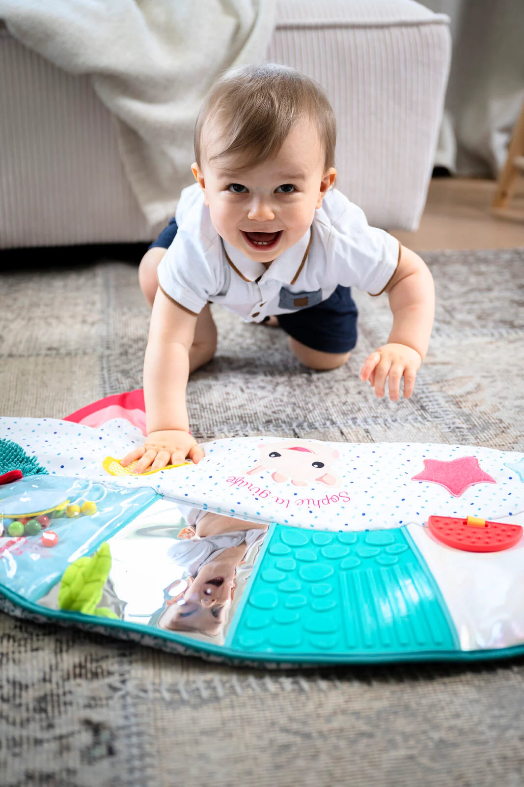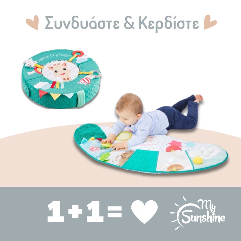 Με το Combo Κίνησης & Ανάπτυξης Σόφι, το μωρό μαθαίνει να κινείται, να δυναμώνει και να ανακαλύπτει το σώμα του με ασφάλεια, χαρά και αυτοπεποίθηση.