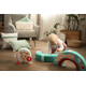 Καθώς το παιδί μεγαλώνει, μπορεί να συνδυάζει τα κομμάτια μεταξύ τους, αναπτύσσοντας τη δημιουργικότητα και τη λεπτή κινητικότητα. Στο στάδιο των πρώτων βημάτων, ο τροχός μεταμορφώνεται σε ρόδα που το ακολουθεί και το ενθαρρύνει να κινηθεί με αυτοπεποίθηση.