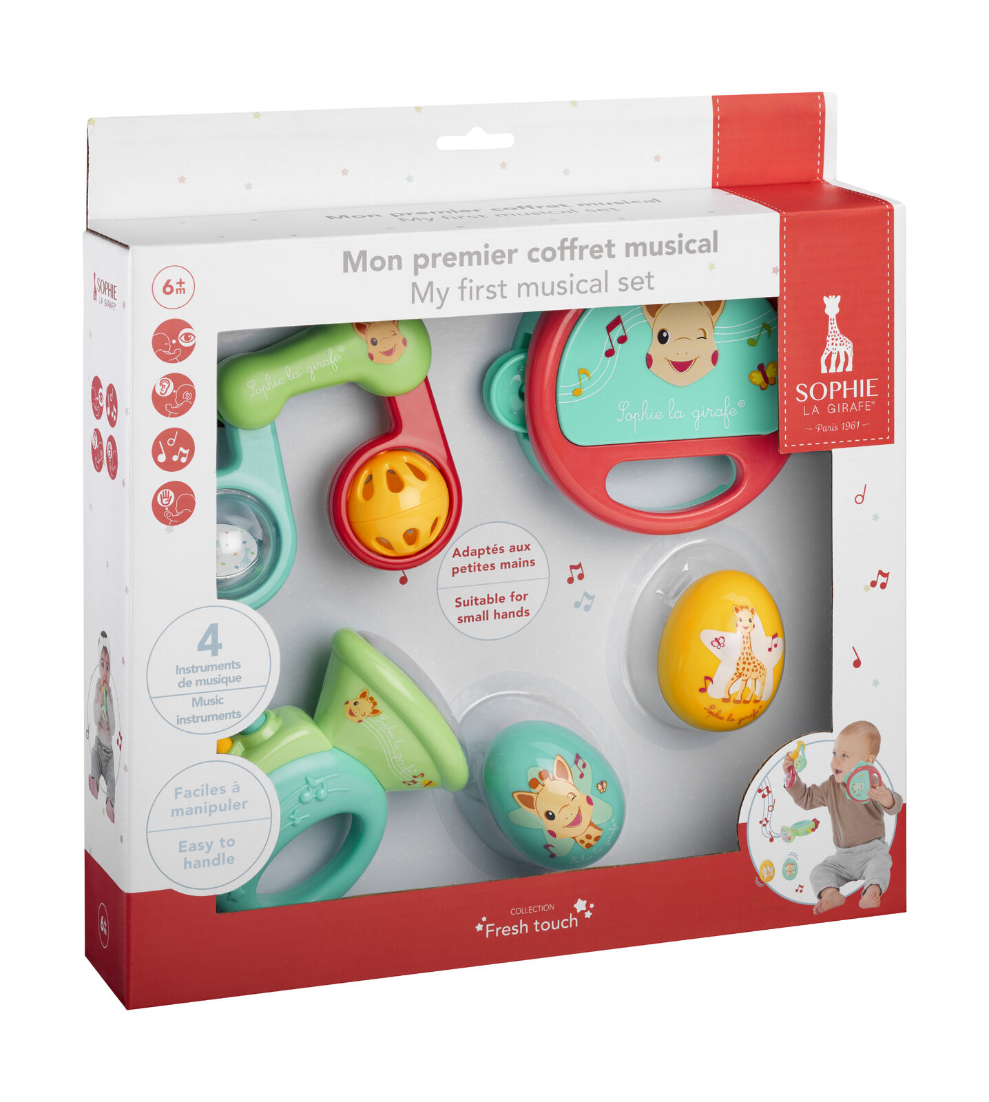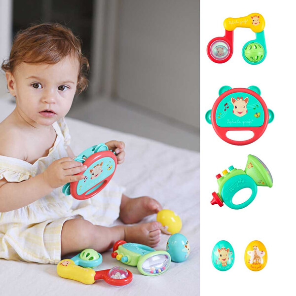 Το “Πρώτο Μουσικό Σετ” με τη Σόφι τη Καμηλοπάρδαλη είναι το ιδανικό δώρο για να μυήσει το μωρό σας στους ήχους, τον ρυθμό και το δημιουργικό παιχνίδι. Με 5 πολύχρωμα μουσικά παιχνίδια, ανοίγει ένα παράθυρο εξερεύνησης που συνδυάζει διασκέδαση και ανάπτυξη.