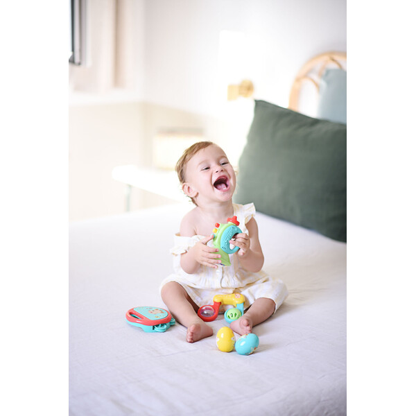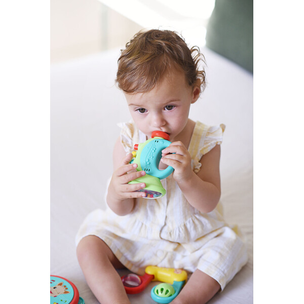 Τα ζωηρά χρώματα τραβούν την προσοχή, οι ήχοι εξάπτουν την περιέργεια και ο εργονομικός σχεδιασμός βοηθά το παιδί να χειρίζεται εύκολα κάθε όργανο, ενισχύοντας την αυτοπεποίθησή του.