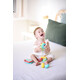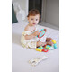 Καθώς το μωρό παίζει, αναγνωρίζει διαφορετικούς ήχους, πειραματίζεται με ρυθμούς και αναπτύσσει τη μουσική του αντίληψη. Παράλληλα καλλιεργεί τον συντονισμό χεριού-ματιού, τη λεπτή κινητικότητα και τη συγκέντρωση — όλα μέσα από φυσικό, ελεύθερο παιχνίδι.