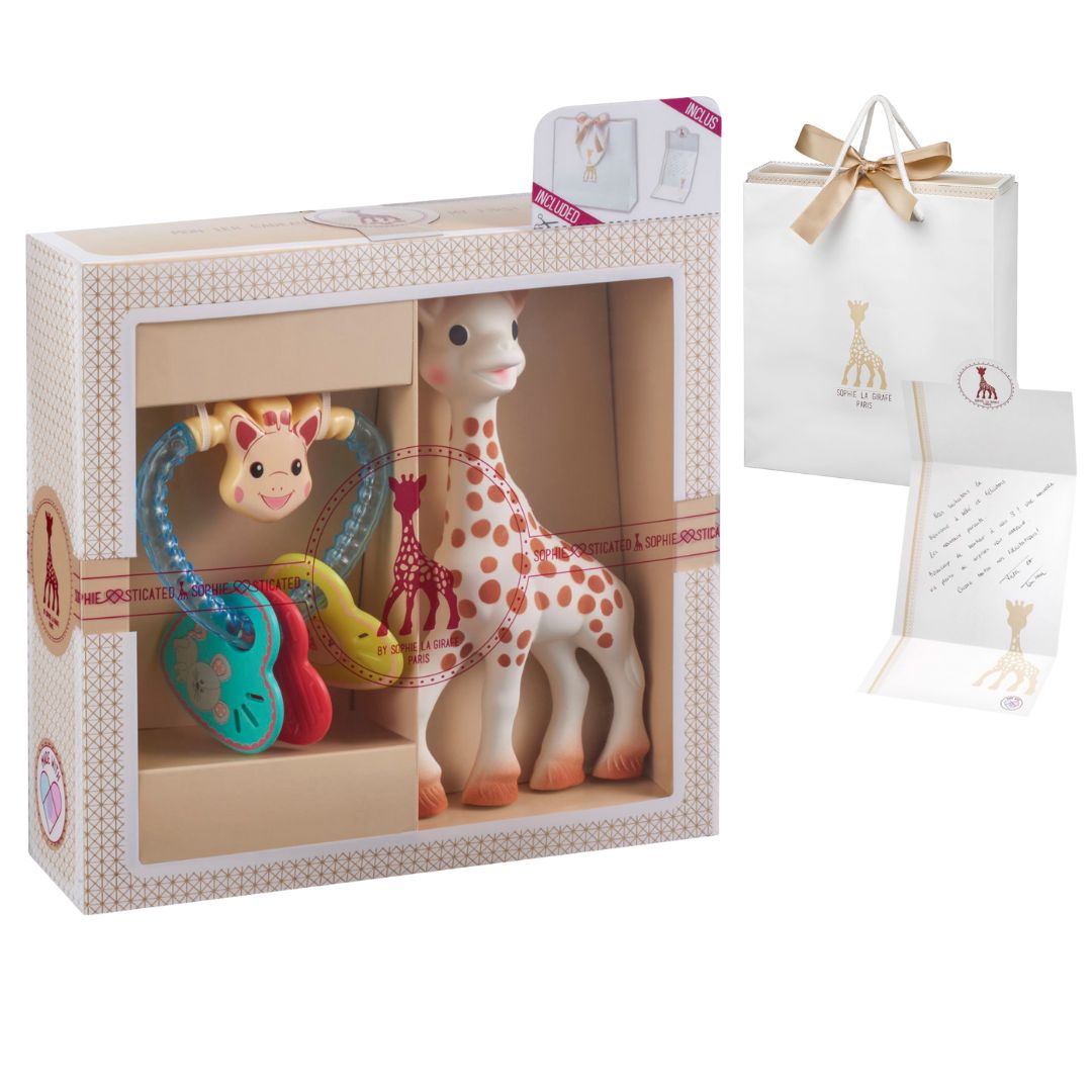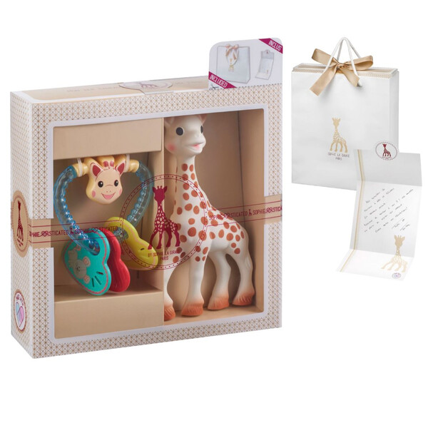 Αυτό το πανέμορφο σετ δώρου περιλαμβάνει την αγαπημένη μας Σόφι φτιαγμένη από 100% φυσικό καουτσούκ και είναι ένα ασφαλές και φυσικό παιχνίδι οδοντοφυΐας για το μικρό σας και μια κουδουνίστρα καρδούλα με λαμπερά χρώματα που τραβούν την προσοχή του μωρού σας. Όταν κουνάει την κουδουνίστρα, χρωματιστές μπαλίτσες κινούνται με θόρυβο καθώς χτυπάνε μεταξύ τους. Πολύ ελαφρια και με εύκολη λαβή για τα παιδικά χεράκια, που θα χαρίσει πολλές ώρες διασκέδασης στο μωρό σας.