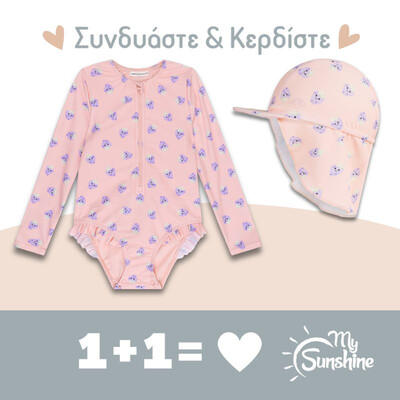 A: Τόσο το ολόσωμο μαγιό όσο και το καπέλο τύπου λεγεωνάριου προσφέρουν προστασία UPF50+ από τις βλαβερές ακτίνες του ήλιου, εξασφαλίζοντας ξέγνοιαστο παιχνίδι. Το καπέλο ειδικά έχει σχεδιασμό που καλύπτει μέγιστα τον σβέρκο και τα αφτιά.