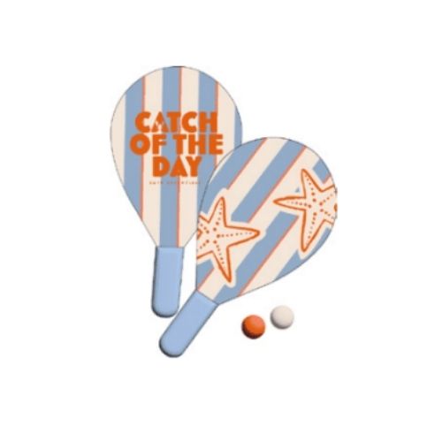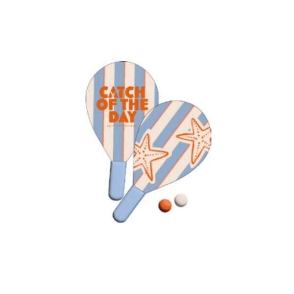 Σετ με 2 ρακέτες και 2 μπαλάκια για τένις παραλίας, από νεοπρένιο, ιδανικό για ατελείωτο παιχνίδι στην παραλία. Ανθεκτικές ρακέτες με εκτύπωση και στις δύο πλευρές και μπάλες σε δύο διαφορετικά χρώματα για ακόμα περισσότερη διασκέδαση στον ήλιο.
