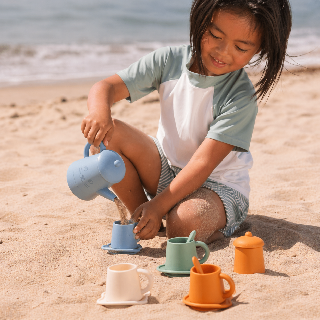 Χαρούμενο και ανθεκτικό σετ τσαγιού, κατασκευασμένο από εύκαμπτη σιλικόνη, ιδανικό για ατελείωτα πάρτι με τσάι γεμάτα φαντασία και δημιουργικό παιχνίδι — μέσα και έξω από το σπίτι.