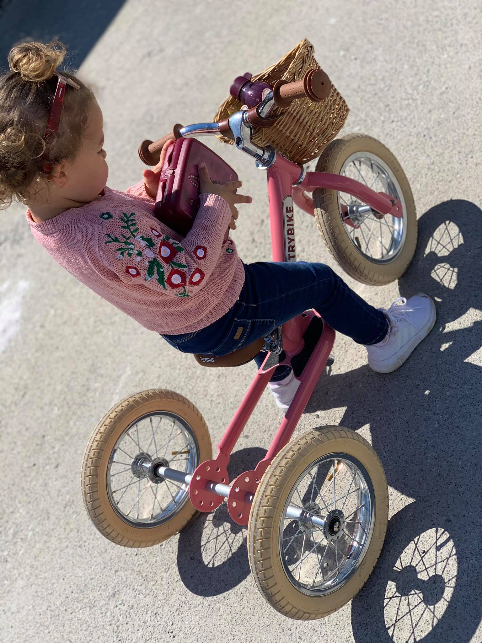 Τα ποδήλατα Trybike έχουν ένα μοναδικό υποπόδιο που πάει την ισορροπία...σε άλλο επίπεδο. Όταν το παιδί σας είναι ικανό να ισορροπεί κρατώντας τα πόδια του πάνω από το έδαφος για αρκετή ώρα είναι πιθανό να κάνει το επόμενο βήμα σε ένα ποδήλατο με πετάλια. Το μόνο πράγμα που θα έχει να μάθει μετά είναι το πετάλι και το φρένο. Μην βάζετε πλέον βοηθητικές ρόδες. Τα περισσότερα παιδιά θα μάθουν ποδήλατο με πετάλι μέσα σε 1 ή 2 ώρες όταν έχουν την εμπειρία ενός ποδηλάτου ισορροπίας Trybike