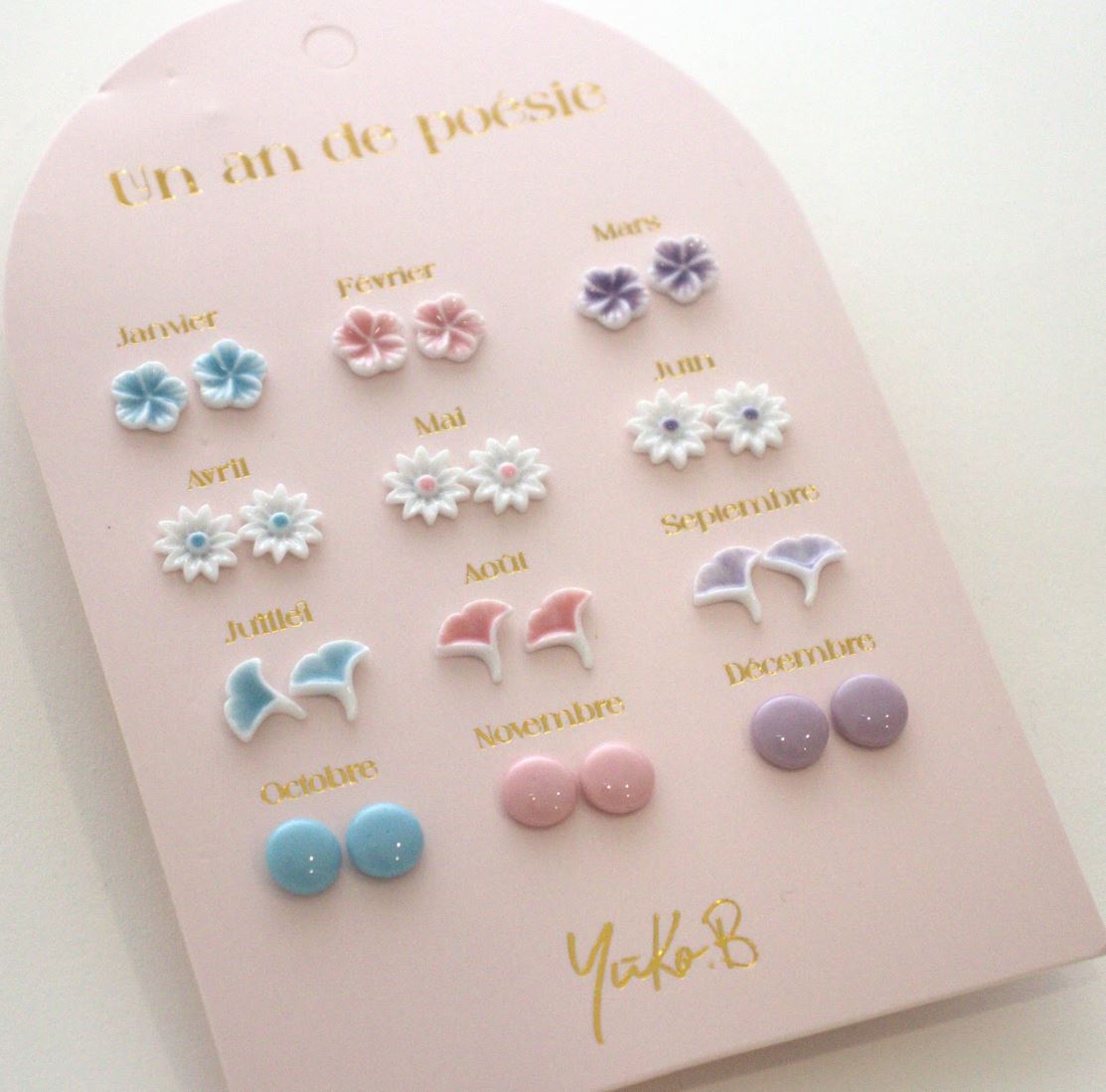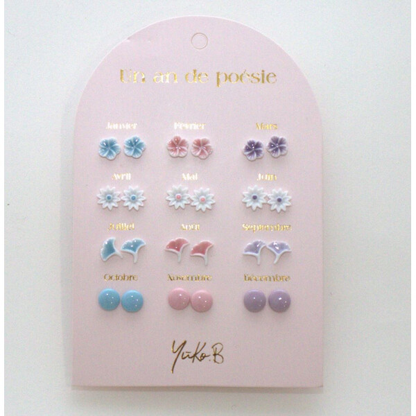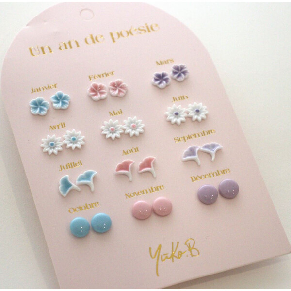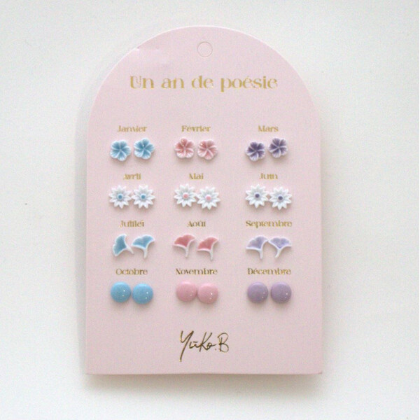 Μια όμορφη καρτέλα με 12 ζευγάρια σκουλαρίκια, ένα ζευγάρι για κάθε μήνα του χρόνου.