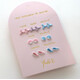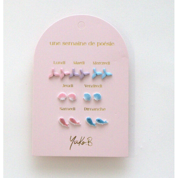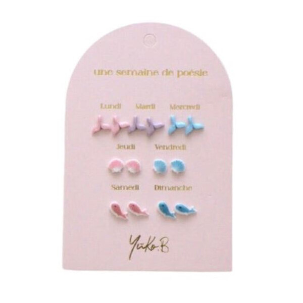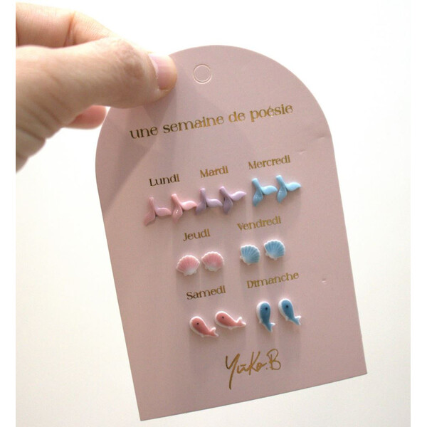 Μια όμορφη καρτέλα με 7 ζευγάρια σκουλαρίκια. Κάθε ζευγάρι είναι διακοσμημένο με ένα μοτίβο.