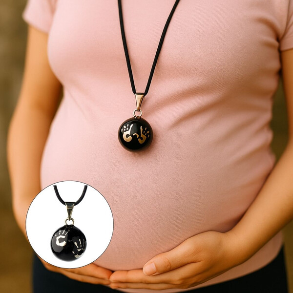 Bola μελωδικό Μενταγιόν εγκυμοσύνης -Μαύρο με ασημένια Χεράκια