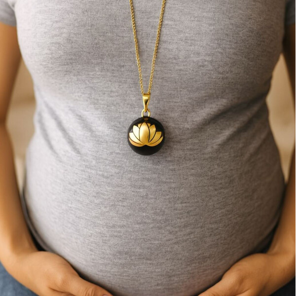 Bola μελωδικό μενταγιόν-Μαύρο με χρυσό λουλούδι Λωτός