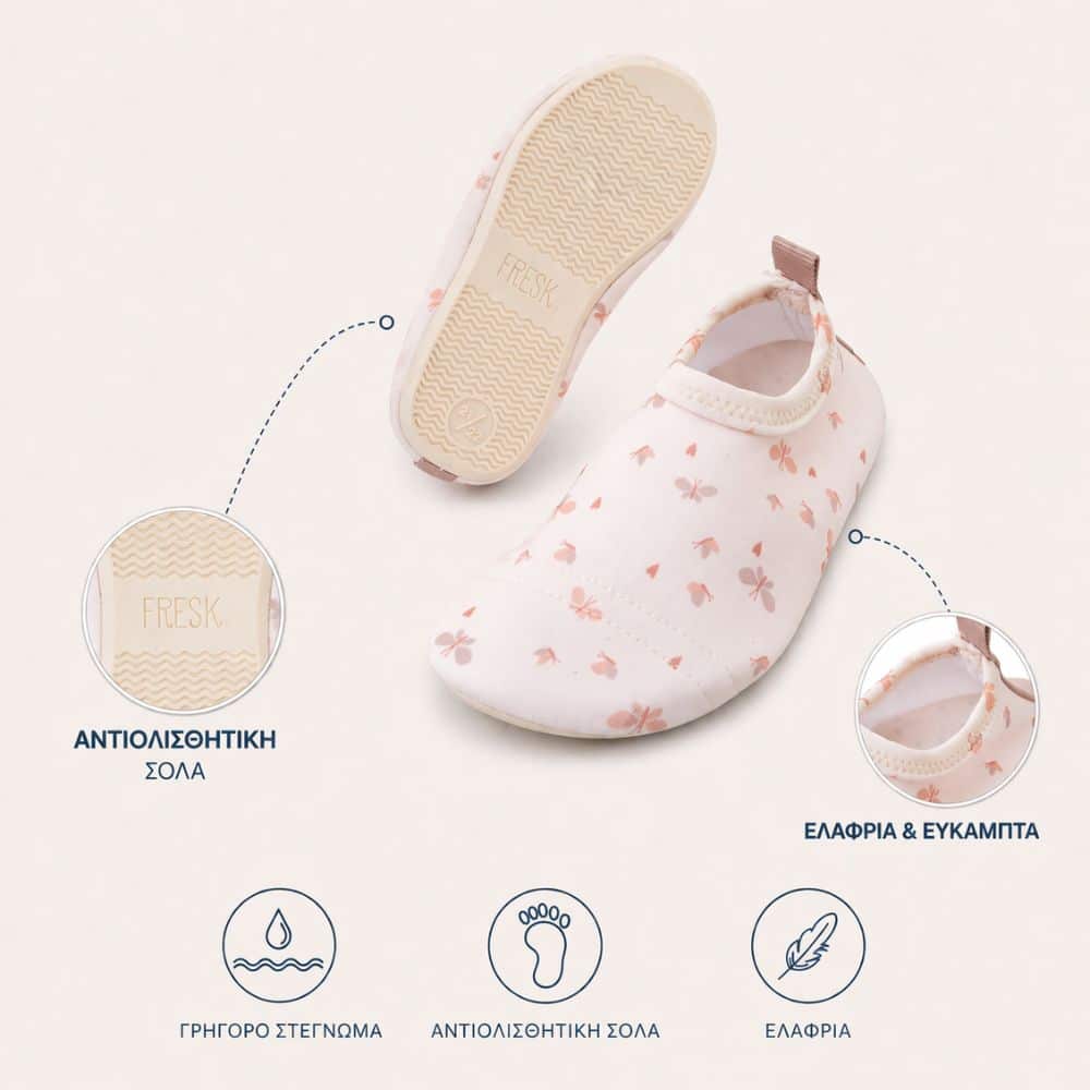 Στην παραλία, στην πισίνα ή στο κάμπινγκ, τα σωστά παπουτσάκια κάνουν τη διαφορά. Τα Fresk είναι σχεδιασμένα για άνεση, ασφάλεια και στυλ – ώστε τα παιδιά να μπορούν να κινούνται ελεύθερα, χωρίς να τα ενοχλεί τίποτα.