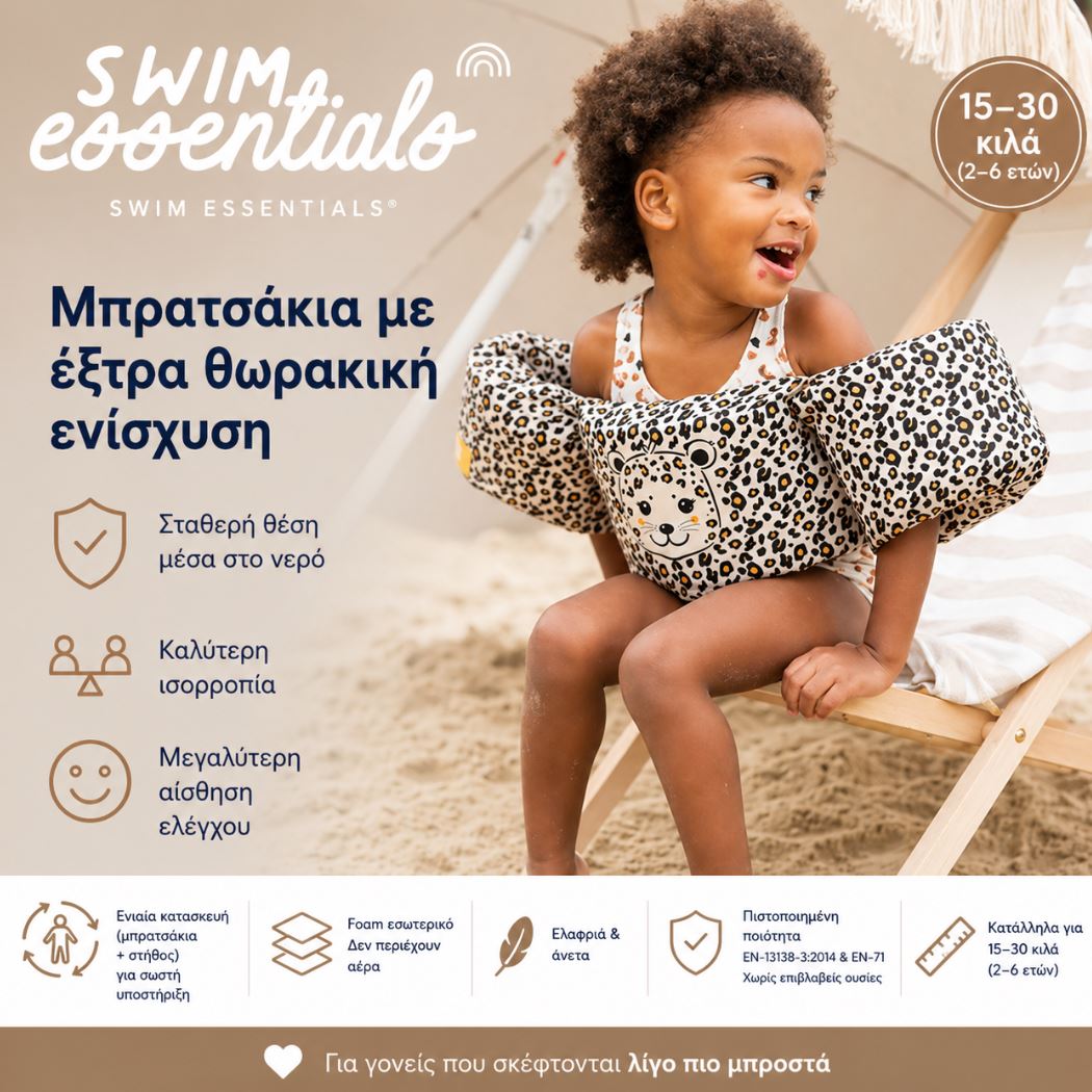 Εκμάθηση κολύμβησης με ασφάλεια με τα ειδικά μπρατσάκια με θωρακική ενίσχυση από την SwimEssentials.