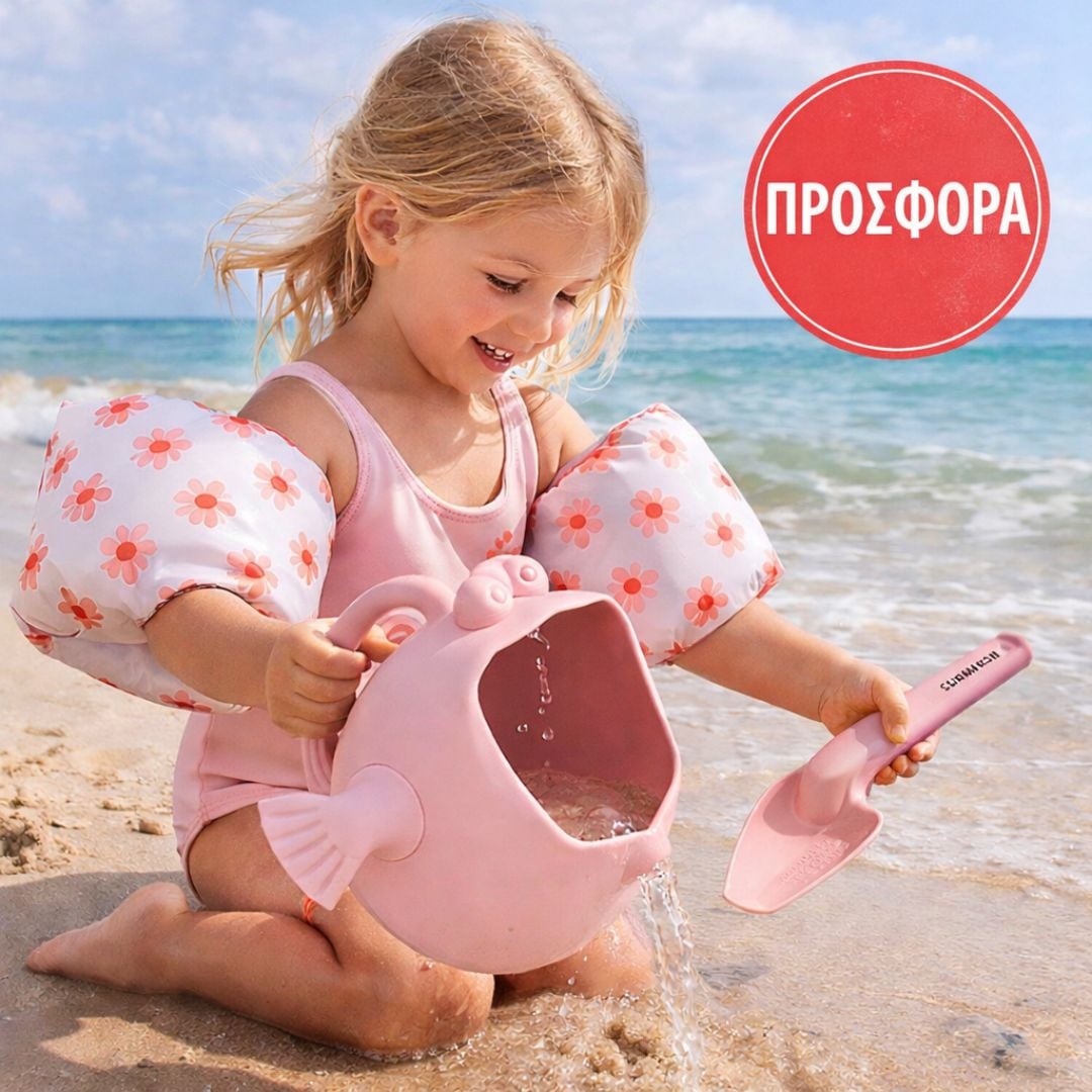 Ανακαλύψτε το καλοκαιρινό combo με κουβαδάκι, φτυαράκι και μπρατσάκια – όλα σε ένα πακέτο με ποιότητα Scrunch & Swim Essentials.