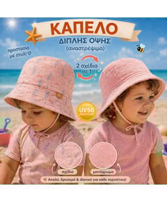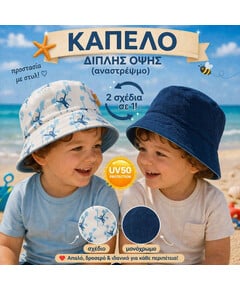 Αποτρέπει εγκαύματα, προστατεύει από τη θερμοπληξία και προσφέρει δροσιά και σκιά στο προσωπάκι τους… με στιλ και χαμόγελο!