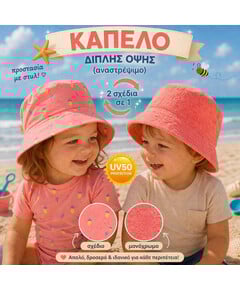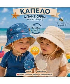 Αποτρέπει εγκαύματα, προστατεύει από τη θερμοπληξία και προσφέρει δροσιά και σκιά στο προσωπάκι τους… με στιλ και χαμόγελο!