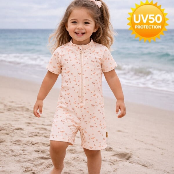 Η προστασία UV 50+ εξασφαλίζει ότι το δερματάκι του παιδιού παραμένει ασφαλές, ενώ το μαλακό και ελαφρύ υλικό του αγκαλιάζει το σώμα του με άνεση και στυλ.