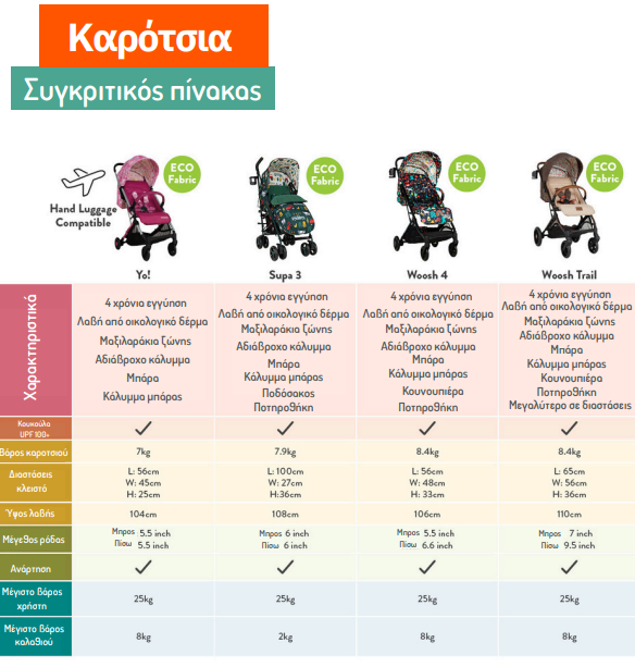 Αν δεν ξέρετε ποιο καρότσι να επιλέξετε, σίγουρα ο παρακάτω πίνακας θα σας βοηθήσει