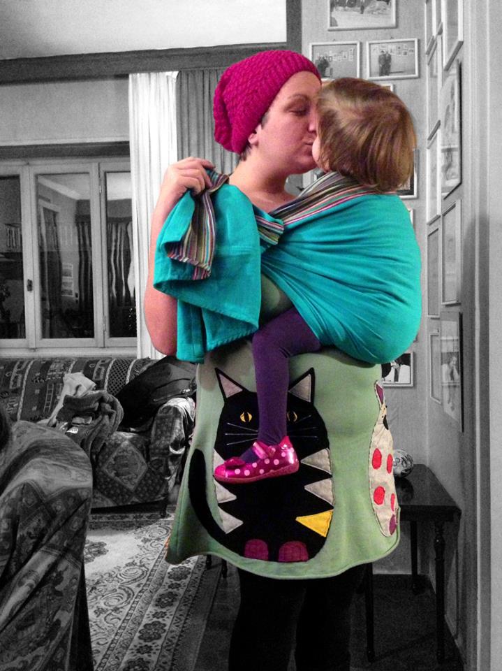 "Η Αθηνά μεγάλωσε μέσα στην αγκαλιά μου. Κυριολεκτικά. 2 χρόνια πηγαίναμε παντού αγκαλιασμένες χάρη στα σλινγκ μας. Σήμερα 3 ετών παρά κάτι μπήκε στο σλινγκ του αδερφού της. Η συγκίνηση και των δυο μας ήταν τεράστια. Δεν ήθελε με τίποτα να κατέβει. Γιατί η αίσθηση του να είσαι τόσο κοντά στη μαμά σου (και η μαμά στο παιδί της) είναι απλά ανεκτίμητης αξίας."- Ολίβια