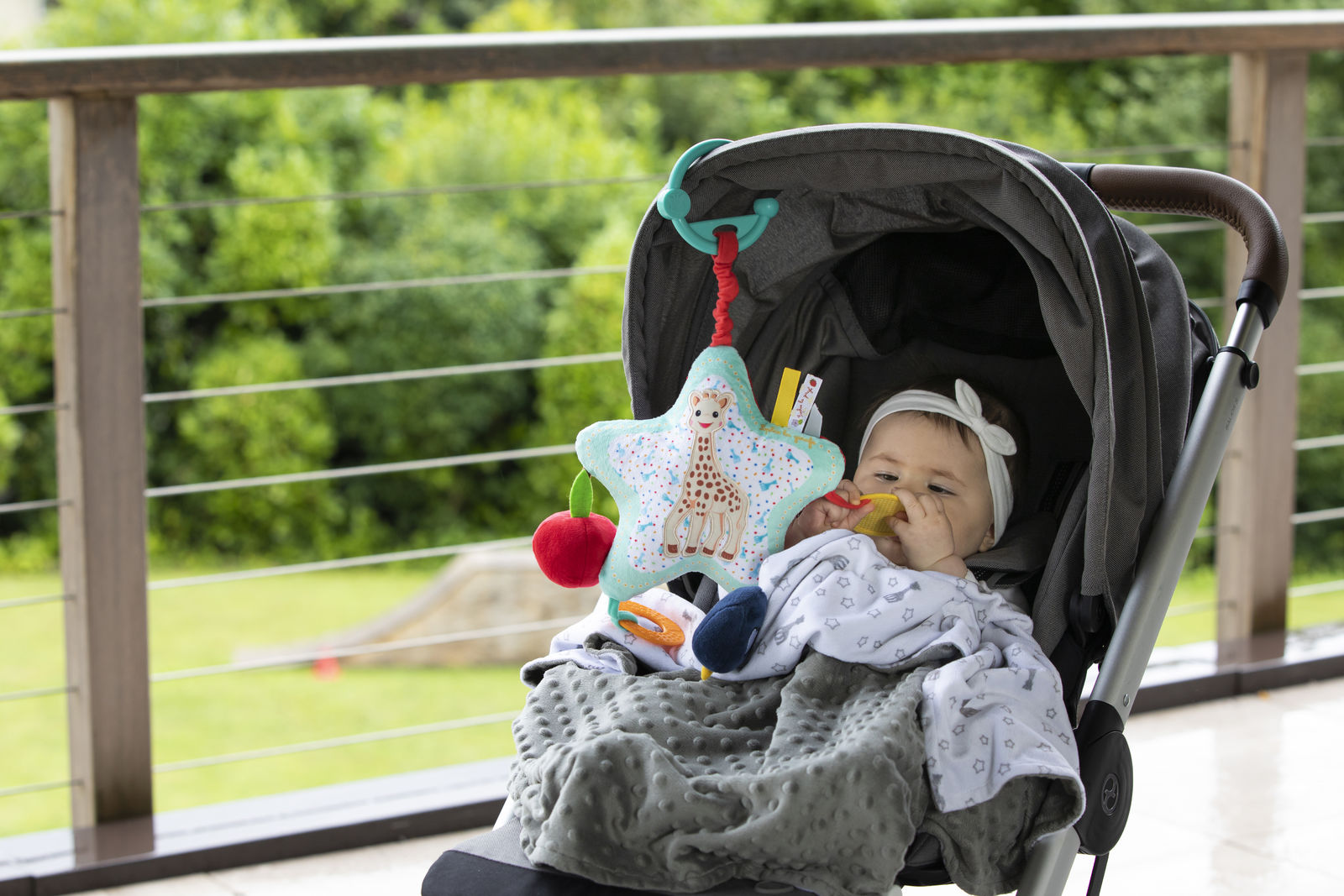 - Πρακτικό γάντζο για εύκολη στερέωση σε καρότσι, κούνια ή τσάντα.