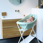 Αυτή η εύχρηστη μεταλλική βάση μπάνιου Bear ρυθμίζεται σε 4 διαφορετικά ύψη (ελάχ. 99 cm και μέγ. 112 cm). Η βάση μπάνιου είναι επίσης εξοπλισμένη με μια εύχρηστη θήκη αποθήκευσης για πετσέτες και βρεφικά ρούχα. Εύκολο να την διπλώσετε ή να την πάρετε μαζί σας.