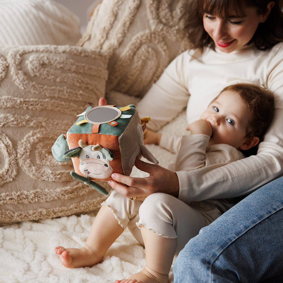 Ο βρεφικός αισθητηριακός κύβος δραστηριοτήτων κρατά το ενδιαφέρον του μωρού για πολλή ώρα, ενθαρρύνοντας την εξερεύνηση και τη συγκέντρωση. Με ήχους, διαφορετικές υφές, διαδραστικά στοιχεία και καθρέφτη, βοηθά το παιδί να αναπτύξει τις αισθήσεις και τις πρώτες γνωστικές δεξιότητες μέσα από το παιχνίδι.