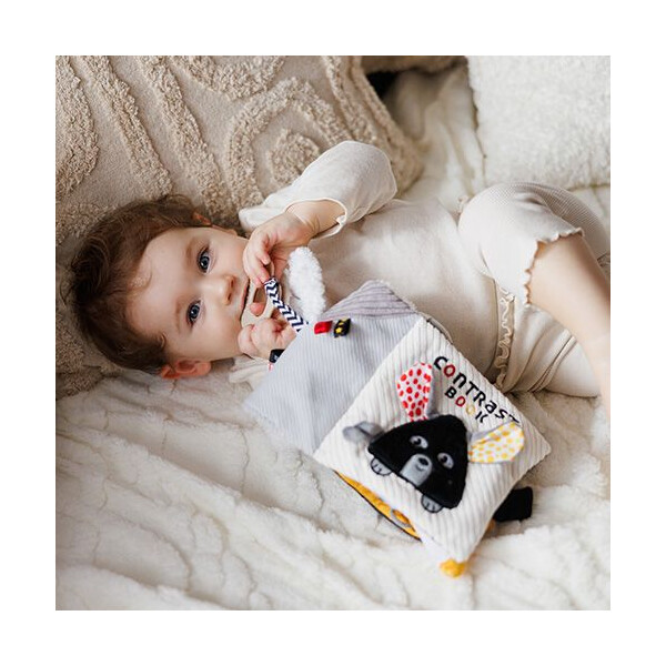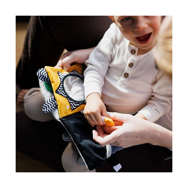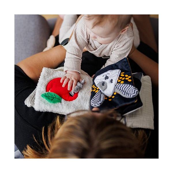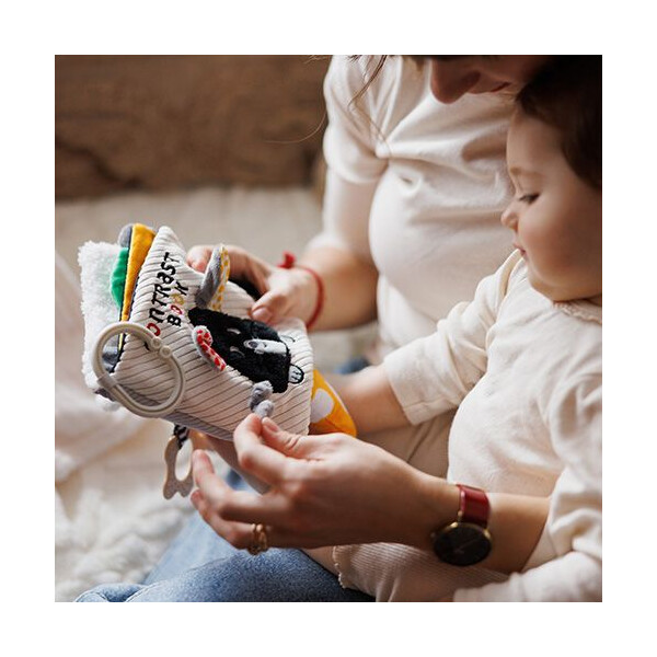 Ένα χαριτωμένο ποντικάκι προσκαλεί το μωρό σας σε ένα κόσμο γεμάτο αντιθέσεις, ήχους και υφές. Το αισθητηριακό μας βιβλίο έχει σχεδιαστεί ειδικά για τους πρώτους μήνες ζωής και βοηθά το μωρό να αναπτύξει τις αισθήσεις του μέσα από το παιχνίδι.