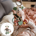 A: Το παιχνίδι διαθέτει πρακτική θηλιά που επιτρέπει την εύκολη και γρήγορη τοποθέτηση και αφαίρεση σε καρότσι, κούνια ή κάθισμα αυτοκινήτου, προσφέροντας άνετο παιχνίδι εν κινήσει.