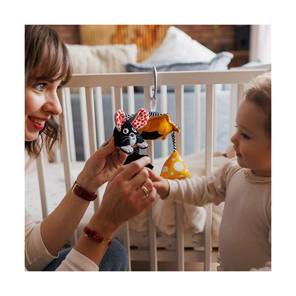 Ένα αισθητηριακό παιχνίδι τύπου μόμπιλε γεμάτο εκπλήξεις που μετατρέπει κάθε βόλτα και κάθε στιγμή παιχνιδιού σε εμπειρία μάθησης! Το χαρούμενο ποντικάκι διεγείρει τη φαντασία, τις αισθήσεις και την κινητική ανάπτυξη του μωρού από τους πρώτους κιόλας μήνες ζωής.