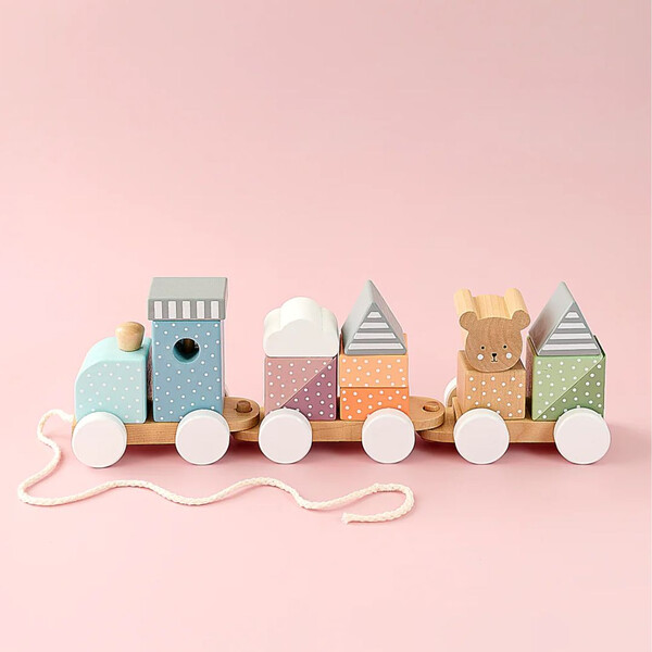 Με αυτό το ξύλινο τρενάκι τα παιδιά μαθαίνουν τα χρώματα, τα σχήματα, ανακαλύπτουν τις υφές, καλλιεργούν τις λεπτές δεξιότητες και αναπτύσσουν το συντονισμό.